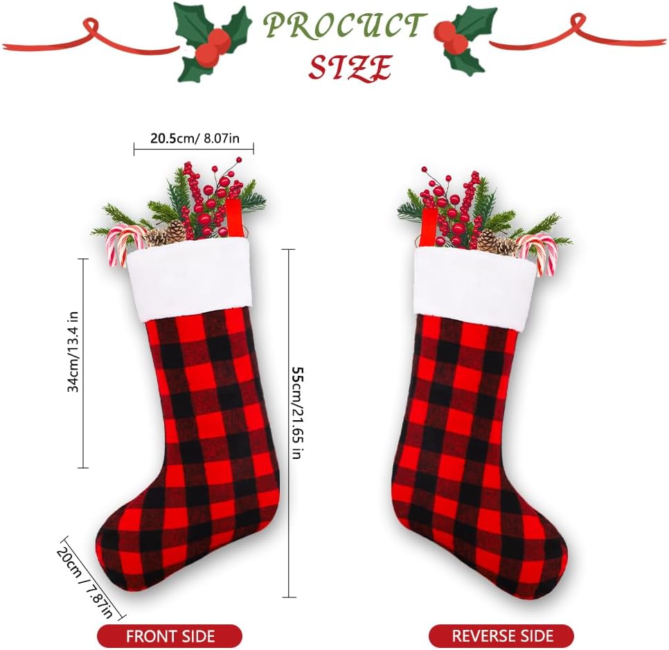 Value Christmas Stockings Sets:You will receive 6 Pack 22in Christmas black red plaid Stockings. Classic color scheme, large size.Absolutely the perfect addition to your Christmas decor and home decorations.