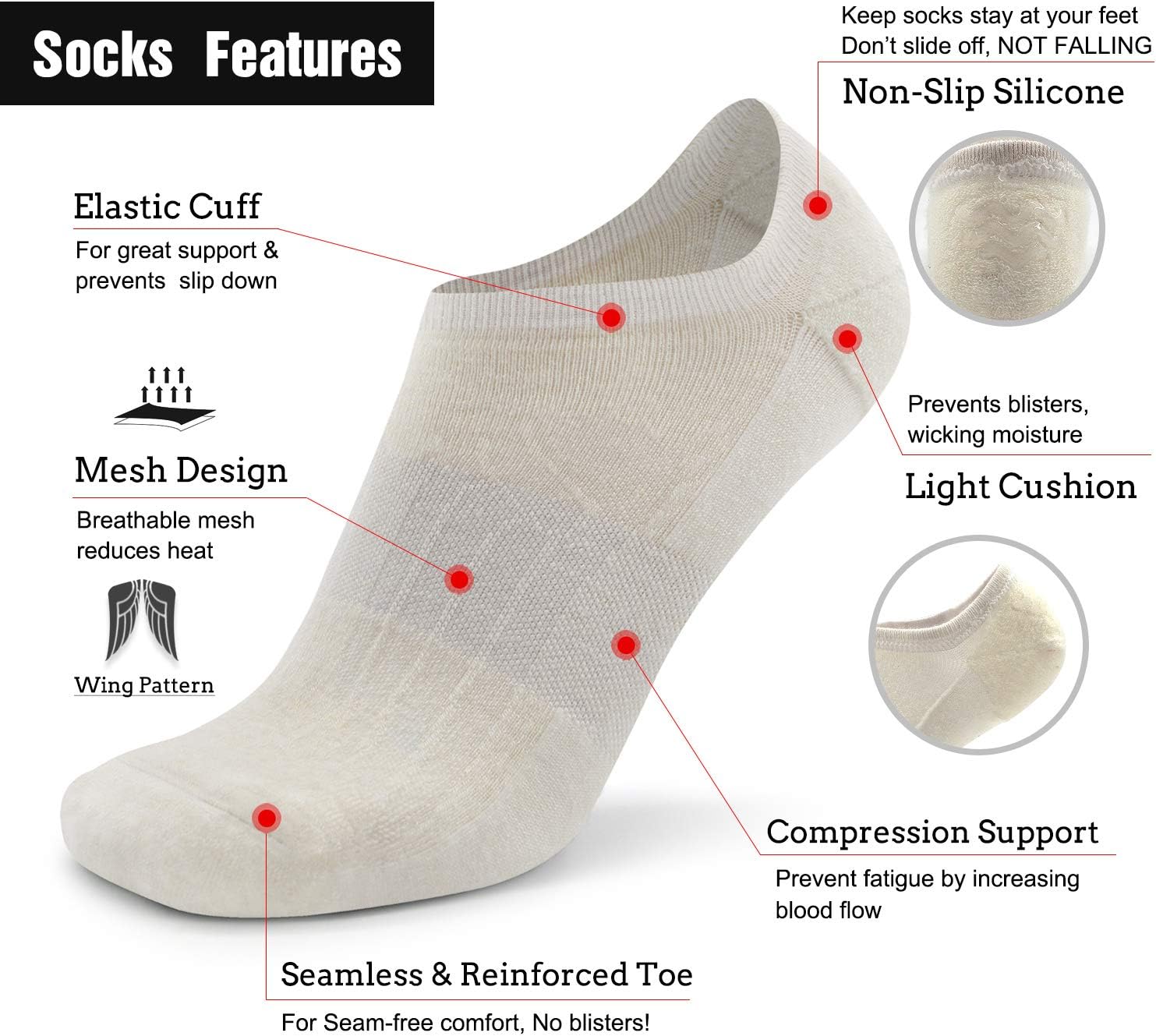 Premium Comfort for Your Feet: These no show wool blend running socks have natural cooling and heating properties keep feet fresh in summer and warm in winter. Mesh ventilation lanes optimize airflow, targeted padding reduces the risk of getting blisters
